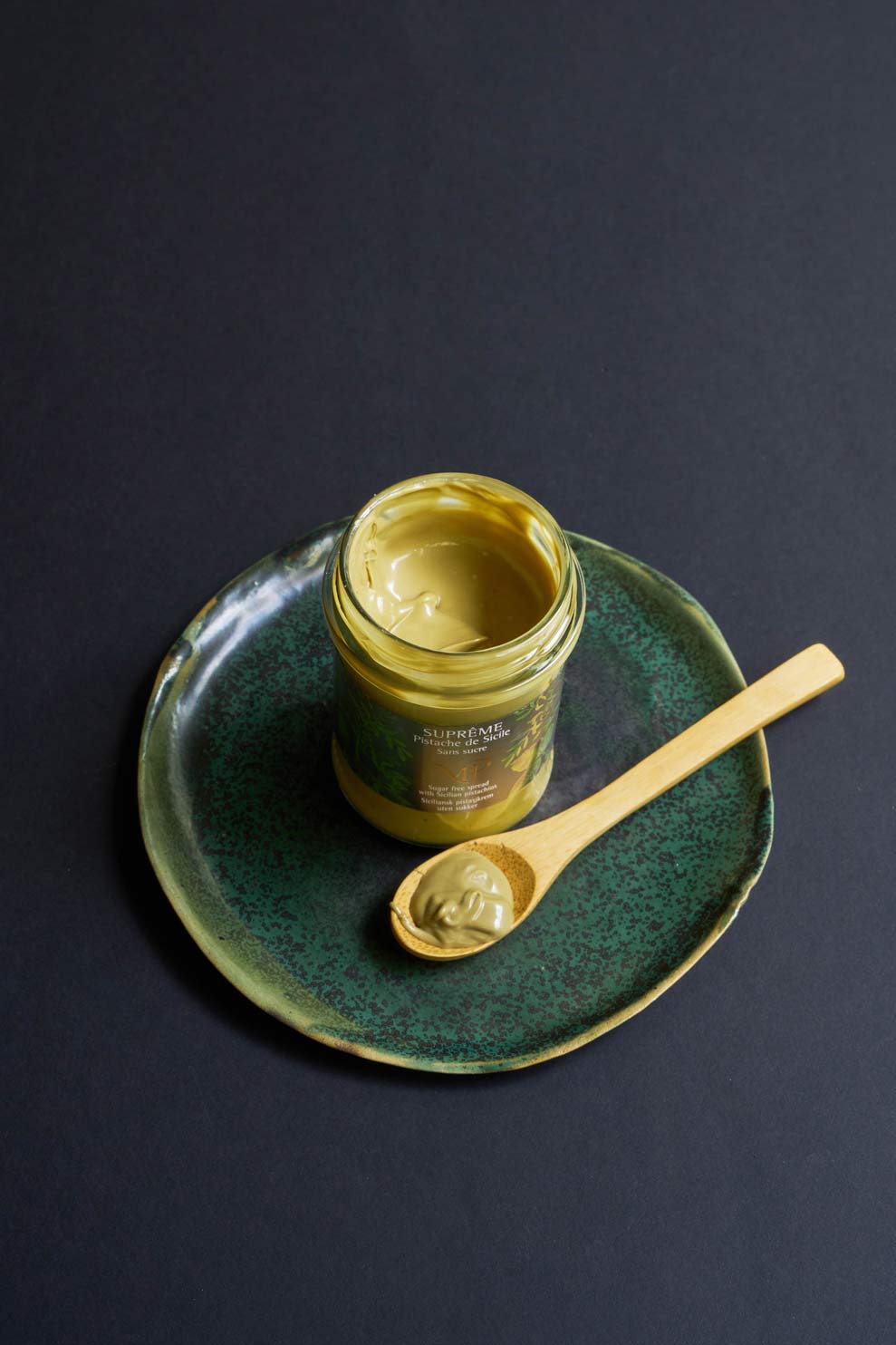 Denne søte pistasjkremen lages i vår egen produksjon i Provence, med pistasjnøtter dyrket av vår venn Rafaël i det unike landskapet La Mancha i Spania – et samarbeid som har vokst gjennom tre tiår.